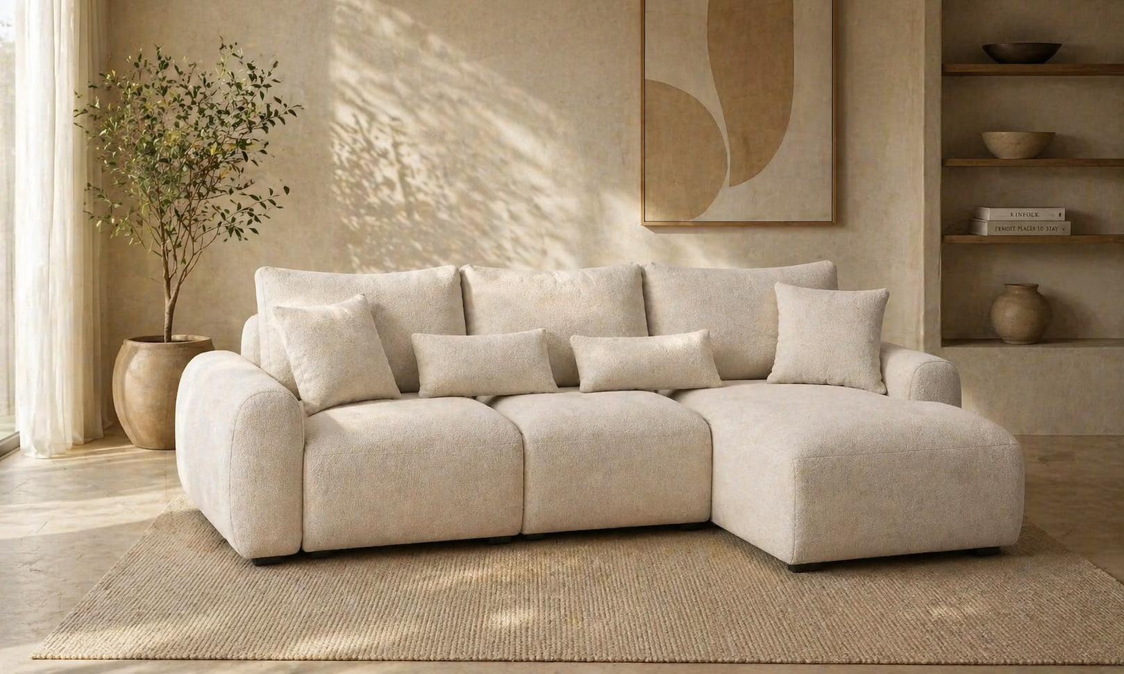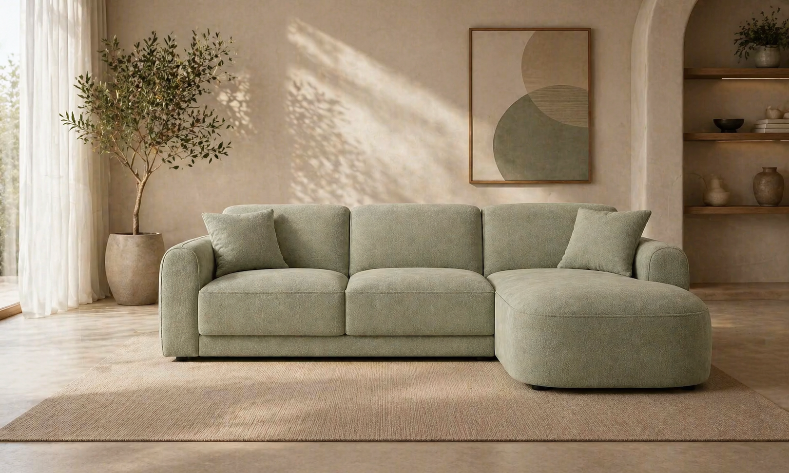 Chaise longue modular con reposabrazos izquierdo, tapicería suave y diseño moderno. Flexible y cómoda, se adapta a cualquier espacio, ideal para relajarse con estilo.